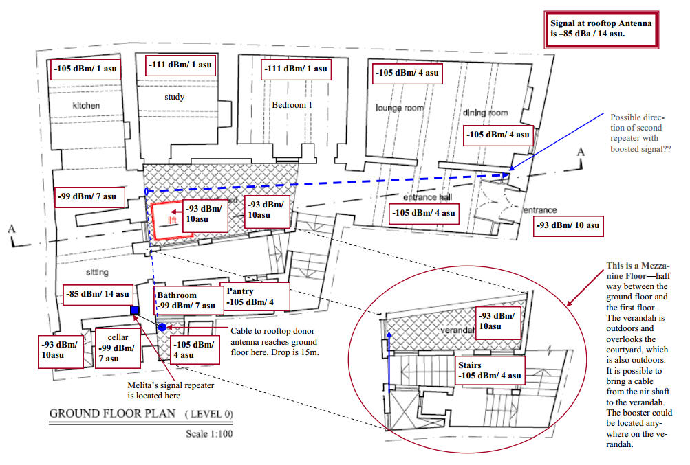 1. Can you please tell me, if I install the proposed system, what will be the likely signal strengths in each of the main areas of the house:
